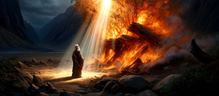 This sacred moment, in which Moses is transfigured to behold the Divine, embodies spiritual ascent, divine identity, and the battle between light and counterfeit glory.